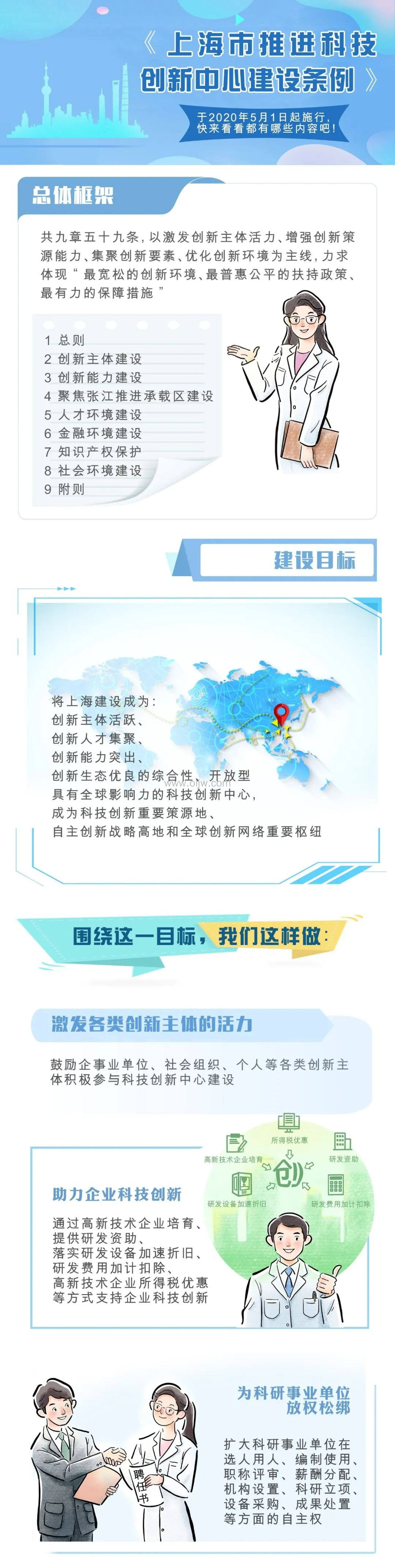 2020年1月20日,《上海市推进科技创新中心建设条例》经上海市第十五届人民代表大会第三次会议表决通过。这是国内首部科创中心建设的“基本法”,以地方法规的方式全力保障科创中心建设,构建更具竞争力的法治环境。《条例》将于2020年5月1日起施行。