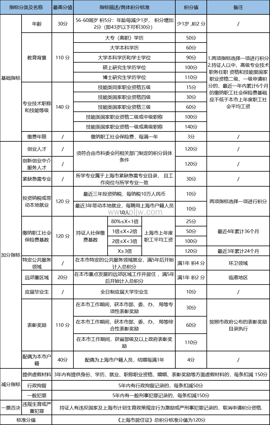 上海居住证积分指标体系由四个指标组成:基础指标、加分指标、减分指标、一票否决指标。