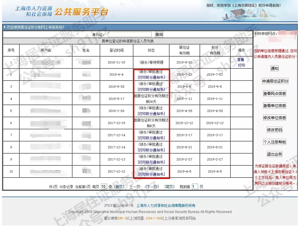 注意:无论你是新办还是续办,都可以在网上打印《上海市居住证》积分通知书,但必须在证件有效期内方可打印。