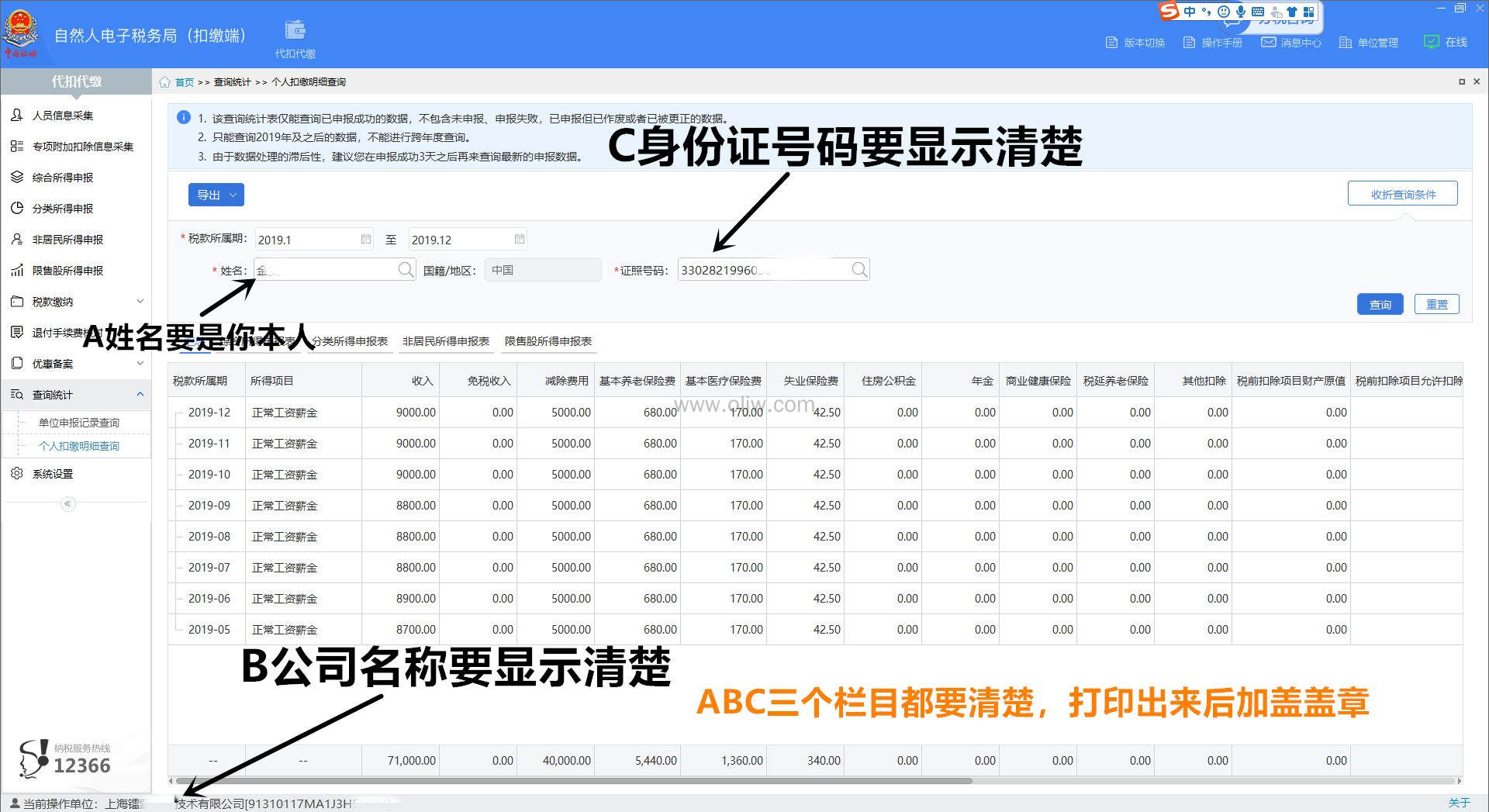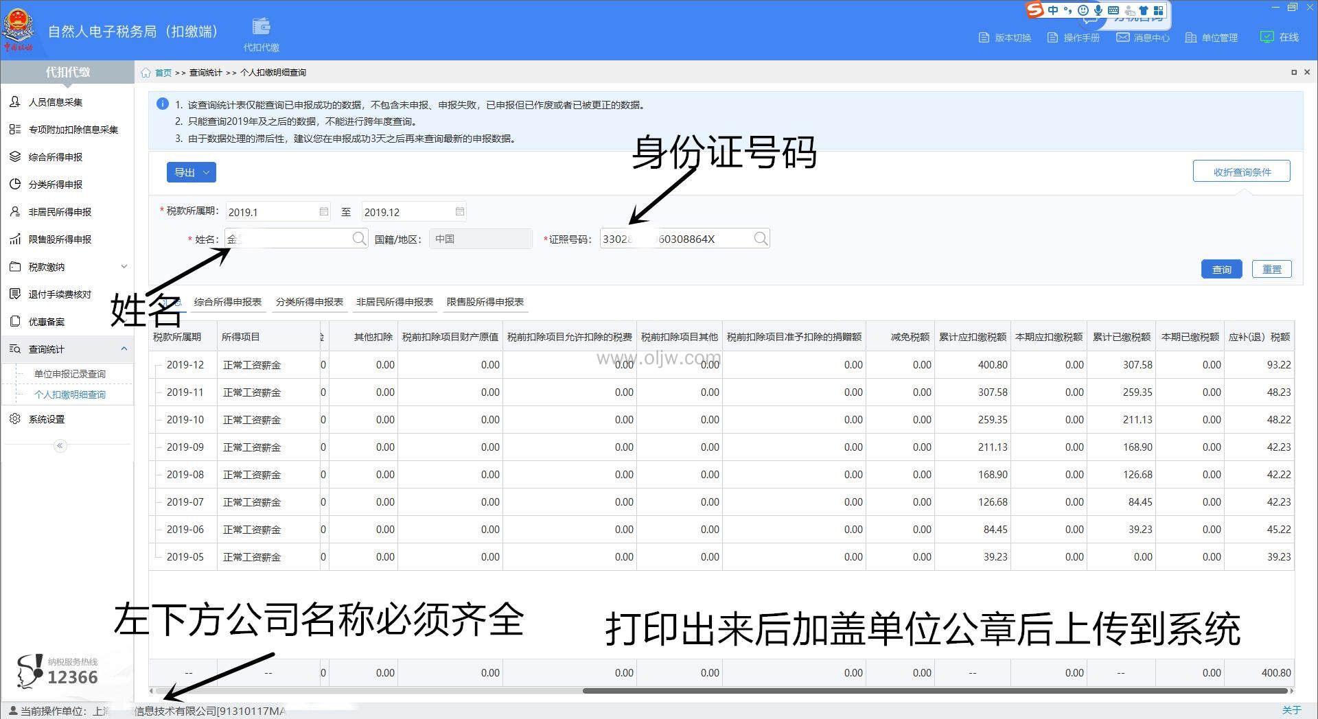 公司财务登录公司报税软件系统个人扣缴明细截图