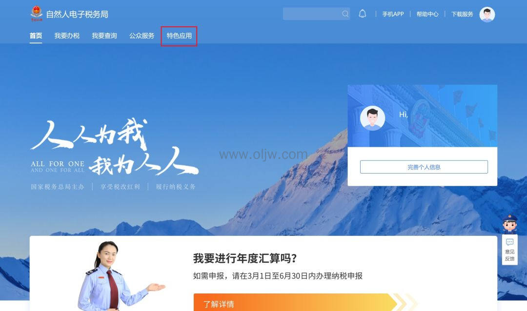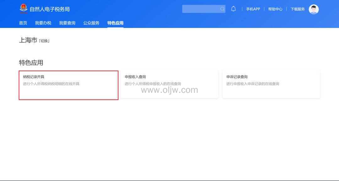 登录后即可通过自然人电子税务局网页版中的【特色应用】使用【纳税记录开具】功能。