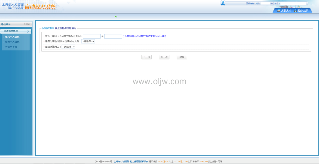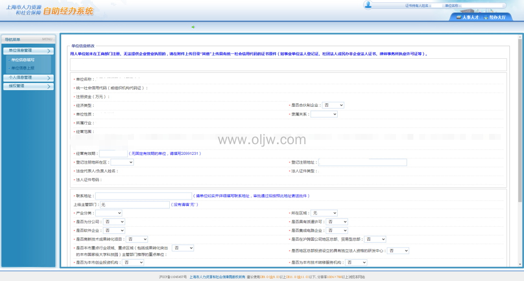 进入上海市人力资源和社会保障自助经办系统,前提是单位要在一网通办系统完成单位注册。
