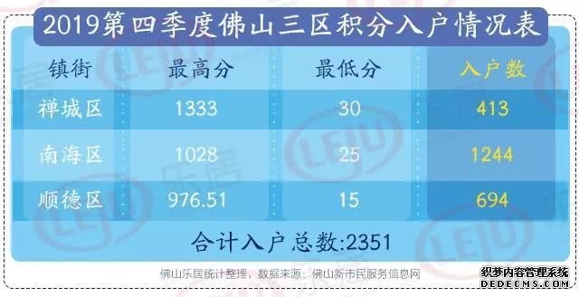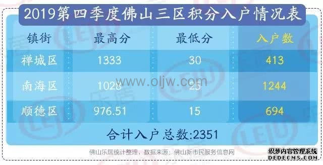 根据三大区公示数据统计,2019年Q4佛山禅南顺共有2351人入围,相比Q3全市,增长近千人,最高积分达1333分,而最低仅需15分!