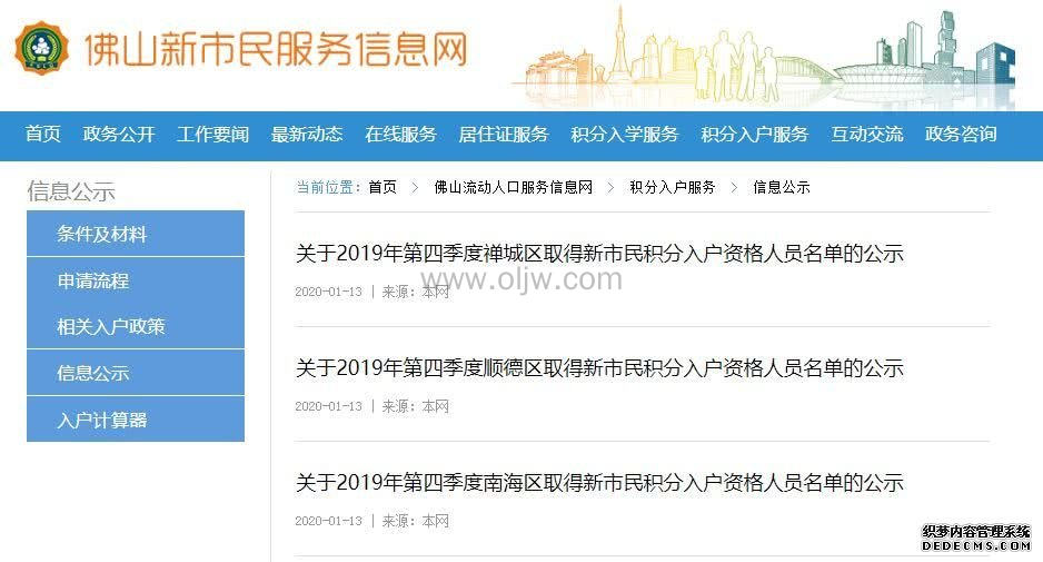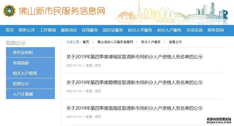 近日,佛山禅城、南海、顺德三大区相继公布2019年第四季度积分入户入围名单公示,三水、高明暂未公布。