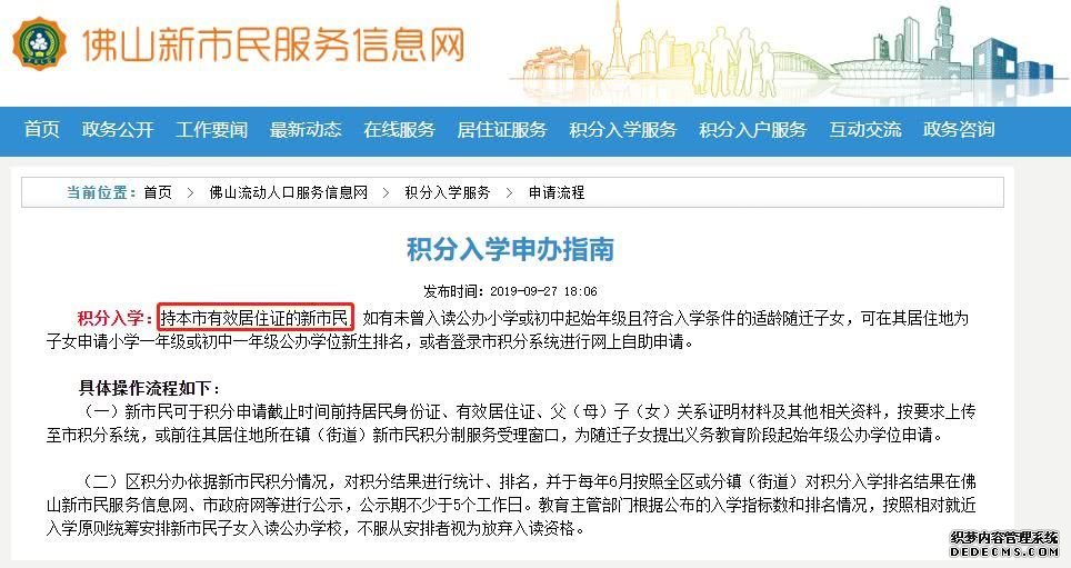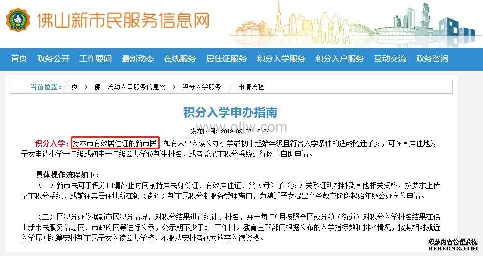 注意:积分入学的基本门槛是:持佛山市有效居住证。